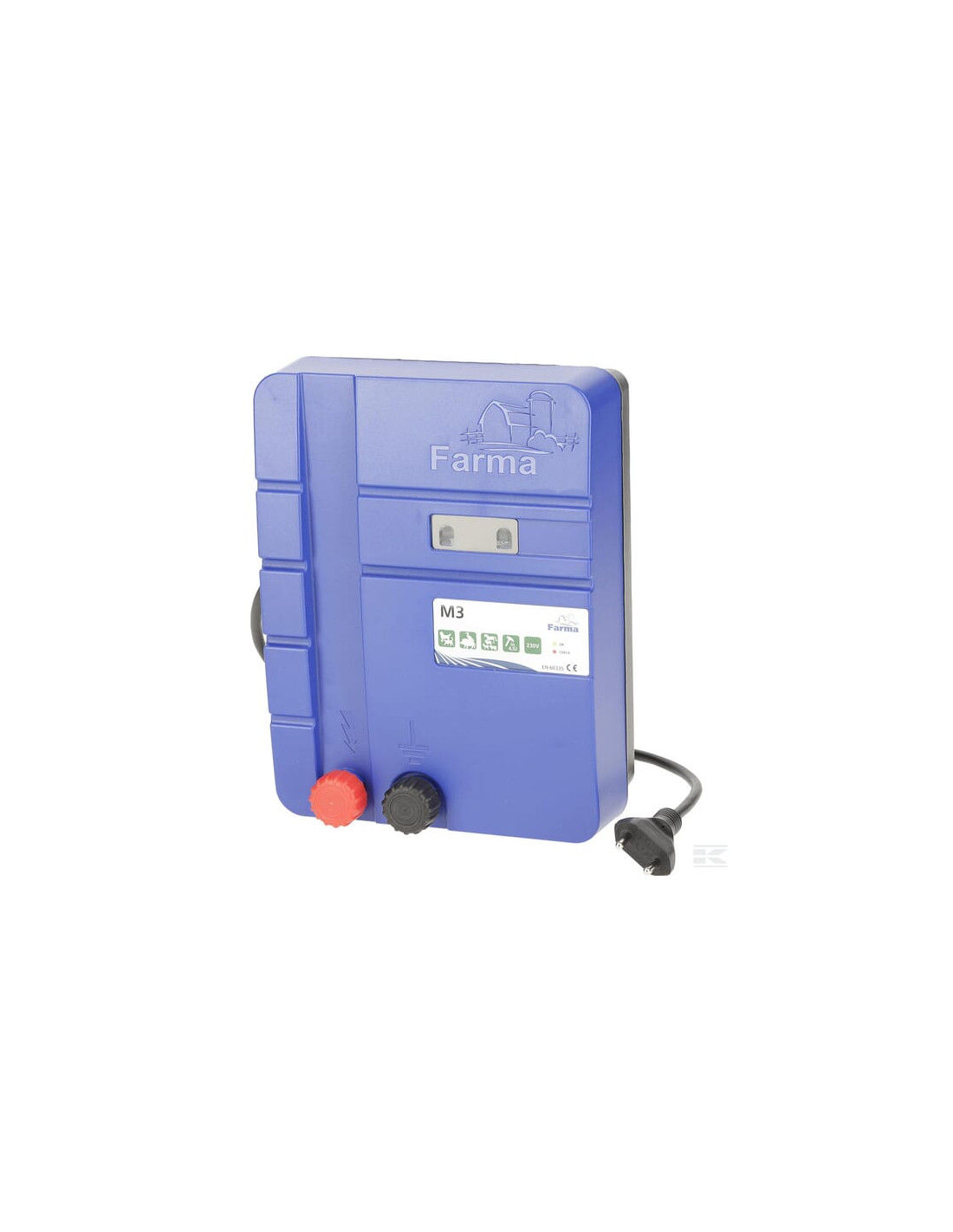Informacje techniczne: FARMA M3 silny elektryzator sieciowy 230 V do wszechstronnego zastosowania. uniwersalne zastosowanie do standardowych ogrodzeń idealny dla koni, krów, owiec i dzikiej zwierzyny Optyczna kontrola napięcia ogrodzenia i uziemienia za pomocą diody LED (Usterki będą wskazane przez czerwono migającą diodę) Jakość "Made in Germany" 3-letnia gwarancja Zoptymalizowane zużycie energii