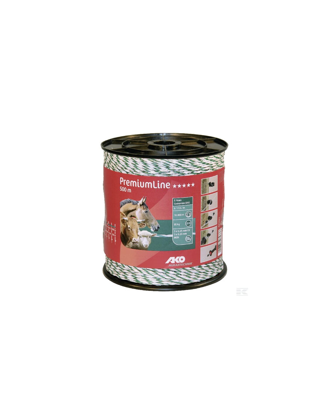 Korzyści: Duża wytrzymałość na zerwanie 40-krotnie większa zdolność przewodzenia niż w przypadku konwencjonalnych materiałów przewodzących Równomiernie duże napięcie na ogrodzeniu