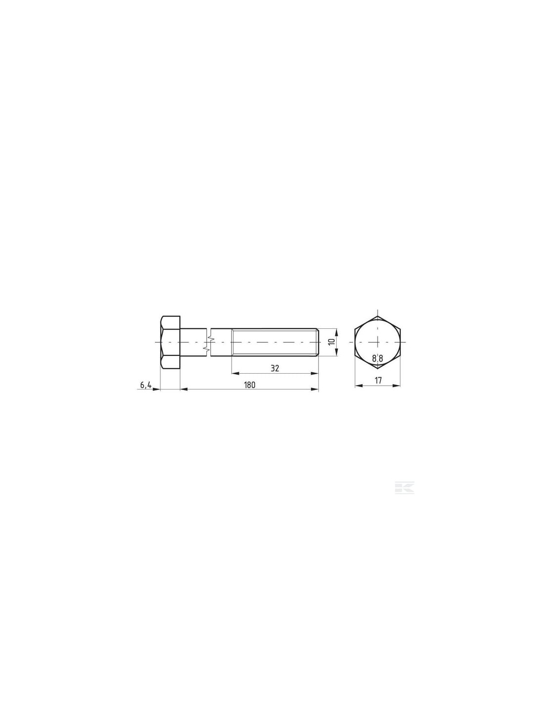 Numer części: 02101018088 EAN: 5700037364421 Jednostka: Kilogram Ilość (zaokrąglenie): 5 Opis produktu: Śruba pół gwint z łbem sześciokątnym, długość mierzona od spodu łba. Rodzaj wymiarowania: Metryczny dŚrednica gwintu: M10 Skok gwintu: 1.50 mm Długość: 180 mm bDługość gwintu: 32 mm Kształt łba: 6-kt. na klucz Typ gwintu: Metryczny SRozmiar klucza: 17.0 mm KWysokość łba: 6 mm Twardość: 8.8 Obróbka powierzchni: Oksydowana Materiał: Stal Norma DIN: 931 Norma ISO: 4014