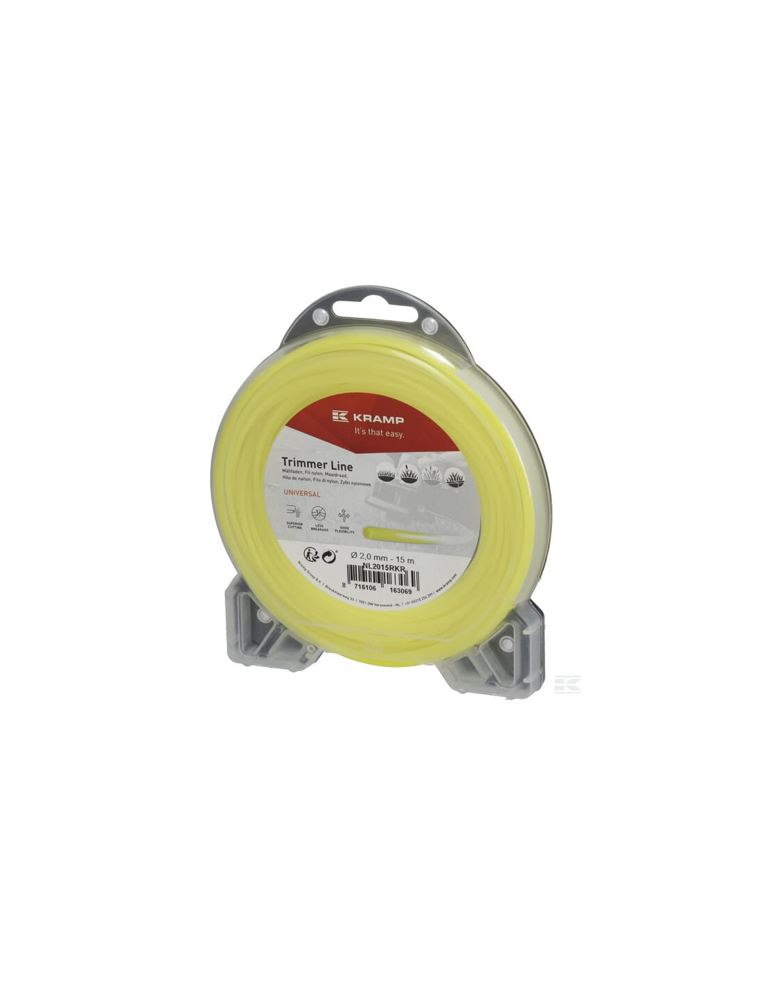 Składa się z: Żyłka tnąca, opakowanie, oraz dedykowany nożyk do cięcia żyłki "Kramp"
